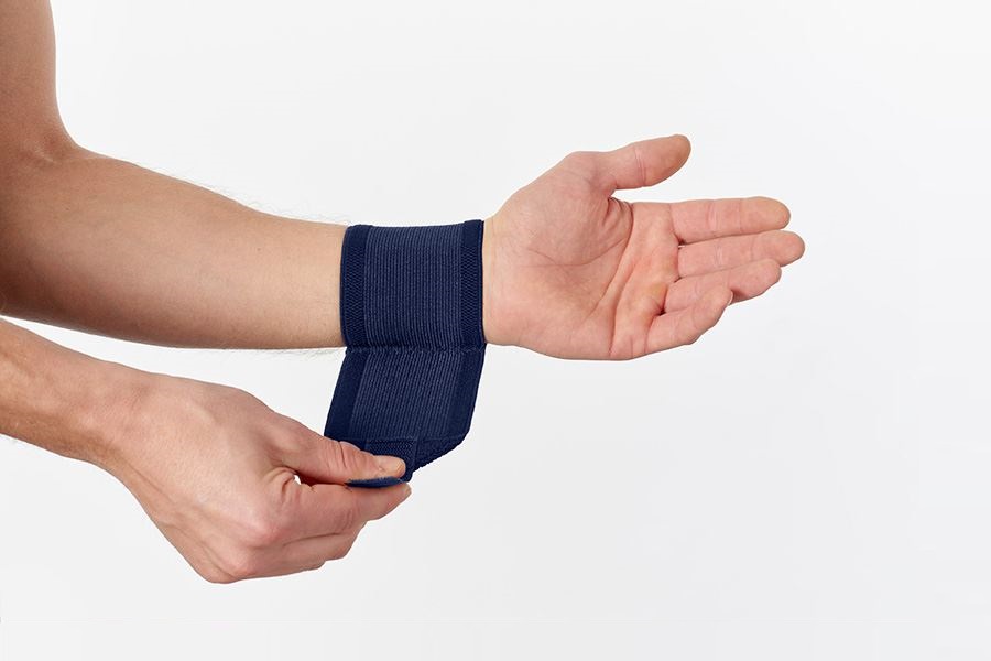 aus elastischem Textilgewebe in blau mit Klettverschluss, Maße: 160 - 180 mm